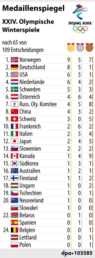 Deutschland büßt in Peking Platz 1 ein. Eurosport bringt Ihnen Live-Updates und den aktuellen Medaillenspiegel von Olympia in Peking 2022. Zahlreiche Nationen kämpfen um die Führung und die Frage.