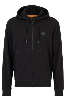 Boss Cotton Terry Zip Up Hoodie With Logo Patch